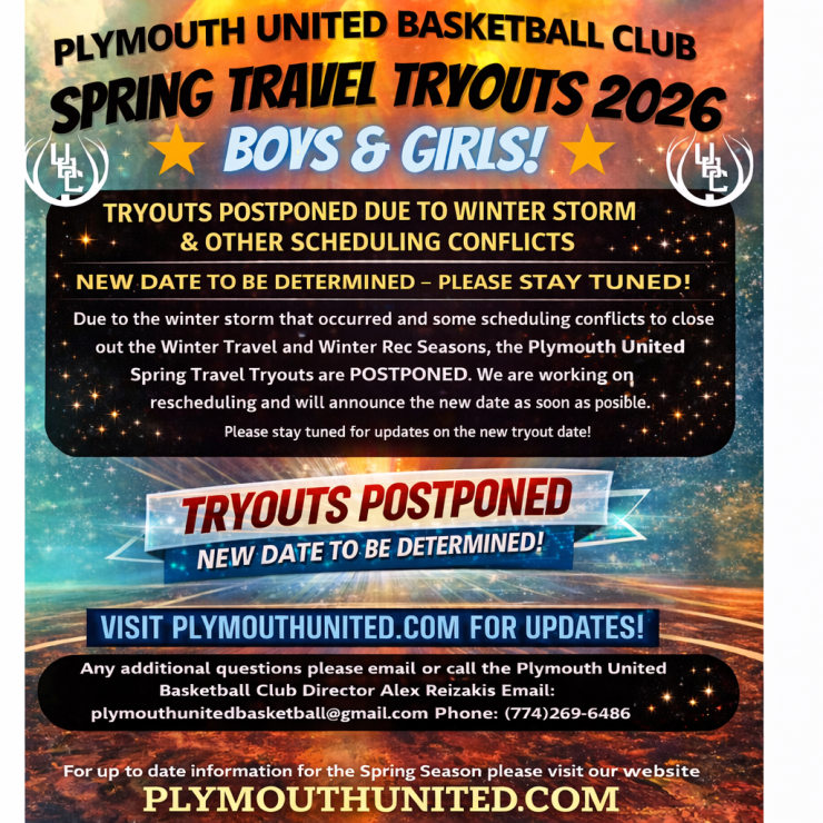 Plymouth United Spring Travel Tryouts 2026 – POSTPONED (Due to the recent winter storm and end-of-season scheduling conflicts, the Spring Travel Tryouts scheduled for Monday, March 2nd have been postponed. We expect to announce the new tryout date by next week (first week of March). Registration remains open below!)