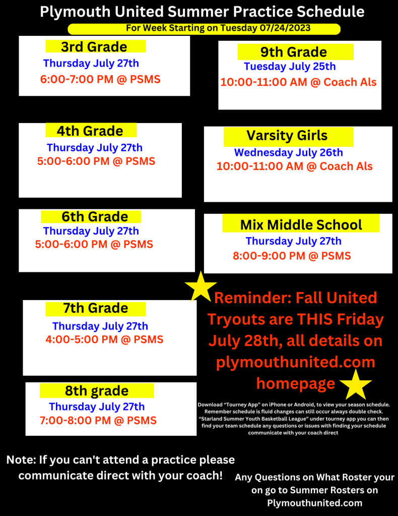 Summer Schedule Plymouth United Summer Basketball Practice Schedule Share this: Click to share on X (Opens in new window) X Click to share on Facebook (Opens in new window) Facebook Like Loading...